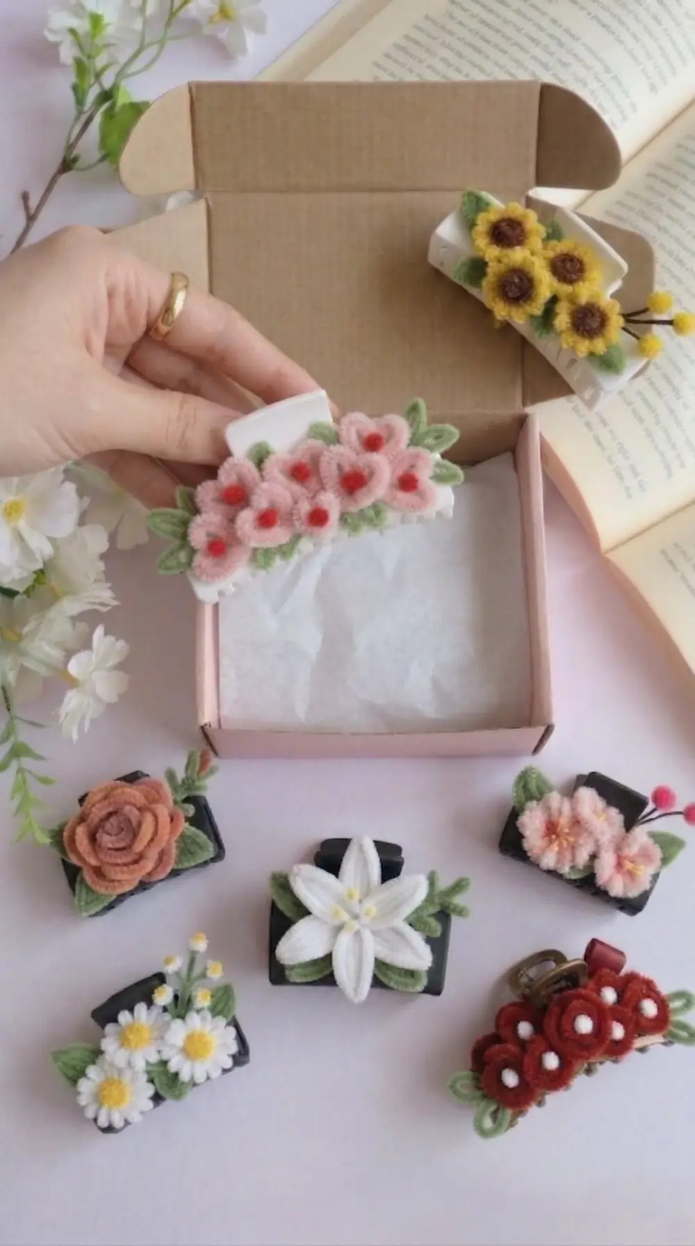 Surprise your favorite person with a beautifully curated box of wearable art! The Handmade Mini Accessory Hamper from Core Memory is our perfectly sized, compact gift box designed specially for the trendsetter in your life. This small but mighty hamper contains a gorgeous bundle of our most loved items: one set of matching keychains (like our popular Sun & Moon or Heart duos), alongside your choice of two exquisite fuzzy wire floral hair clutchers.