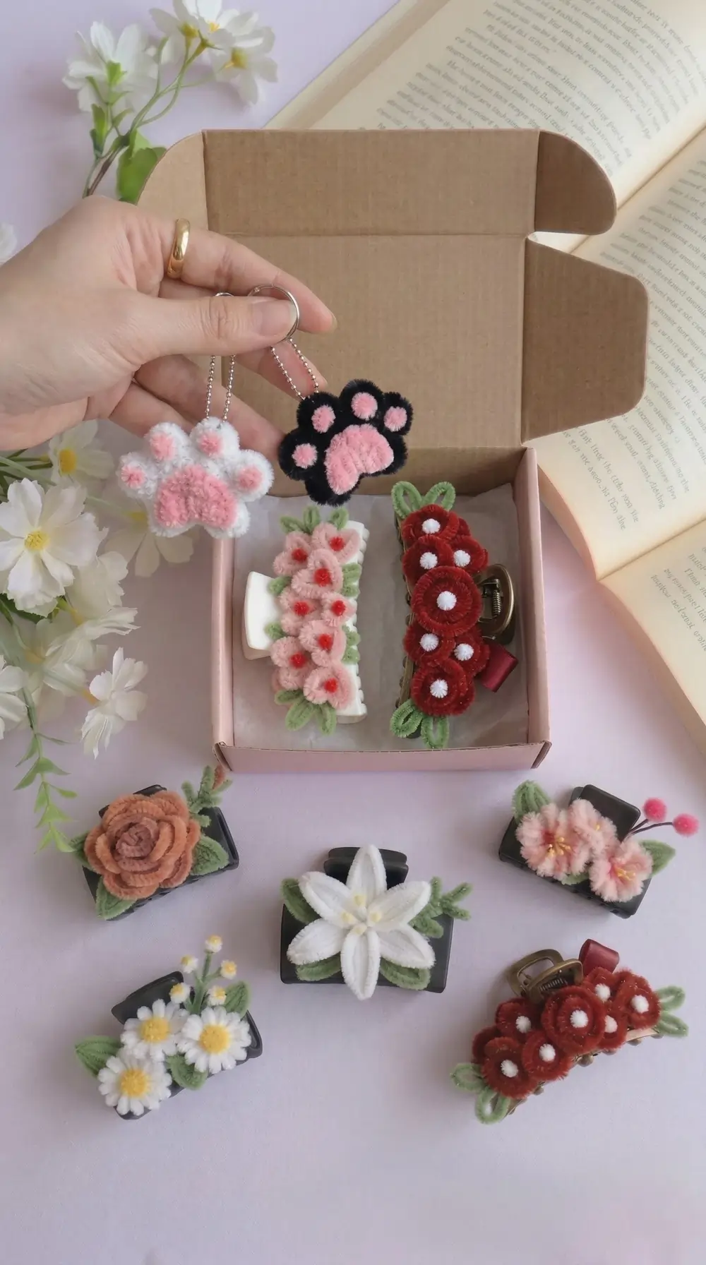 This is the ultimate, stylish gift package for birthdays, Friendship Day, or as a sweet surprise for your partner. Because every aesthetic is unique, we want you to build the perfect box. How to customize: Once you place your order, simply chat with us on Instagram to select exactly which matching keychain set and which two specific floral clutchers you want included from our massive variety of designs!