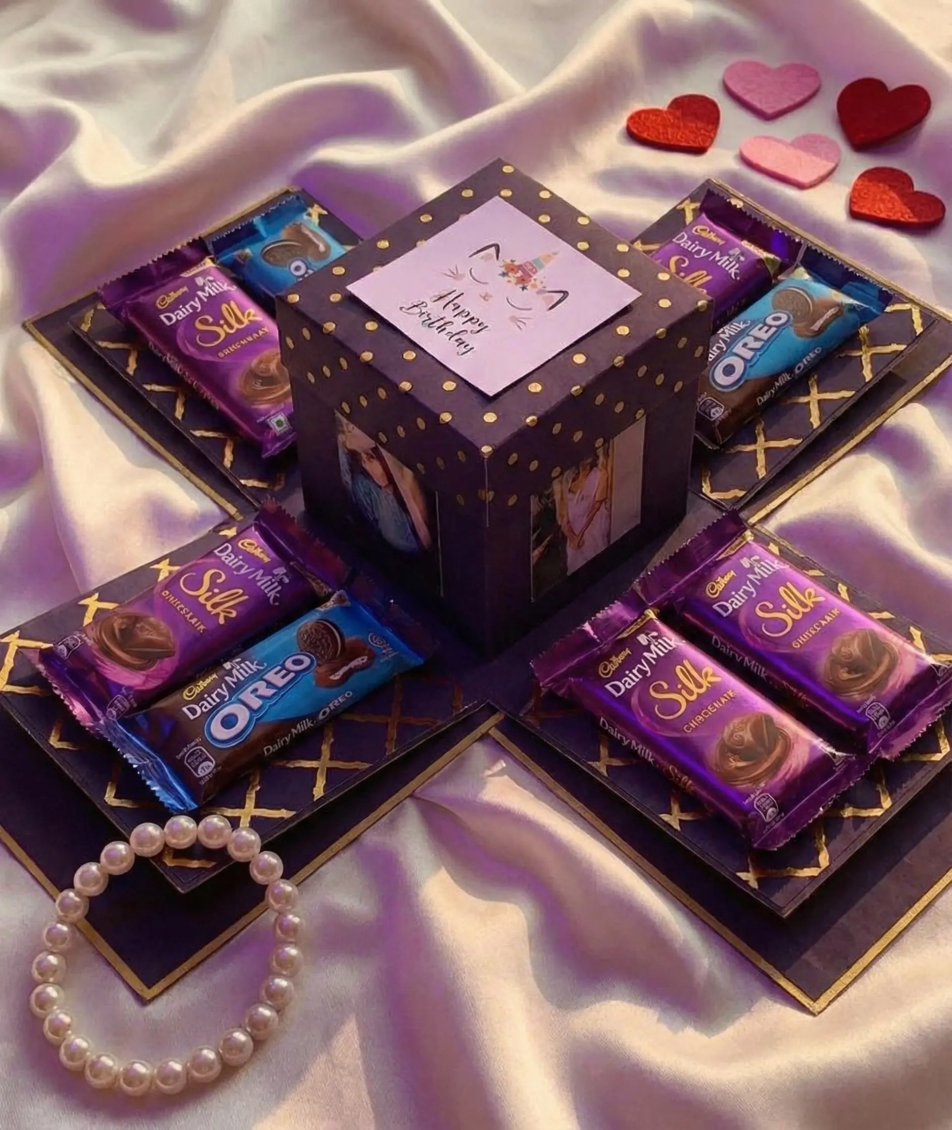 Customizable Photo & Chocolate Explosion Cube! Holds 4-6 pics & chocolates (Silk/KitKat). We collect photos via WhatsApp. Best Valentine’s surprise!